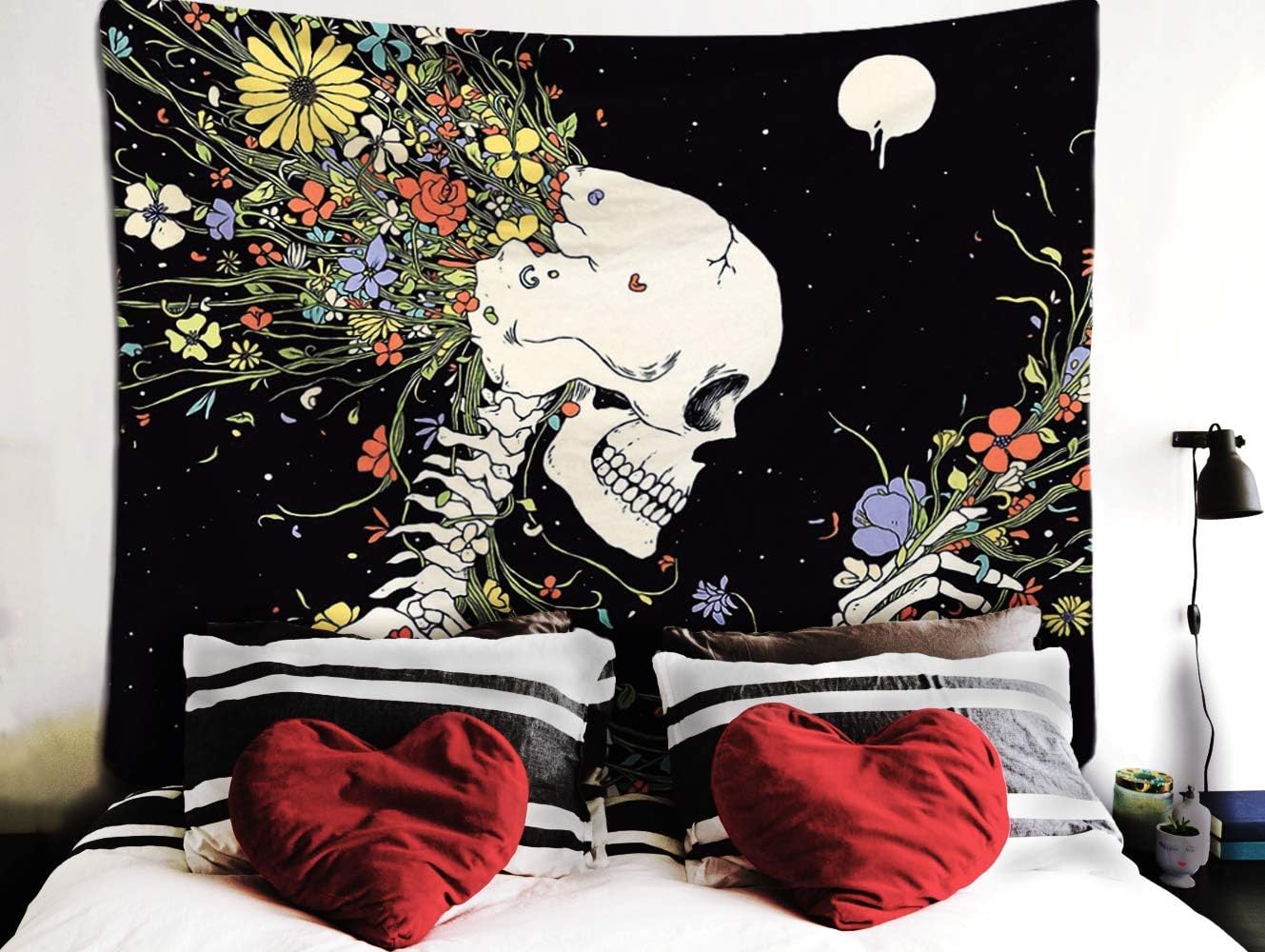 Add some unique decor to your living room with this rock and roll skull tapestry. Cestbin wizard skull tapestry wall hanging, sun and moon tapestry stars and cloud tapestry, black chakra tapestry, solar gothic tarot tapestry for dorm bedroom (wizard skull, 51.2 x 59.1) 4.8 out of 5 stars. Wall tapestries are lightweight, durable and portable. 5% coupon applied at checkout. Sale price $24.99 regular price $30.00 sale. With bold and bright colors this is sure to elevate the appearance of any spacewhy customers love house of tapestrys wall hangings. With detailed craftsmanship and qualified material this tapestry brings attention to any room. Sale price $34.99 regular price $40.00 sale — sold out. 4.5 out of 5 stars. Sara nell wall hanging tapestry fire skull rose black and white tapestries wall tapestry home decorations for living room bedroom dorm decor in 50x60 inches. Skull kiss of death tapestry, wall decor hanging tapestry. Skull tapestry skeleton floral tapestry black tapestry starry night sky tapestry black and white flowers tapestry wall hanging for room (51.2 × 59.1 inches) $10.51. Psychedelic magic wizard skull tapestry wall hanging home decor for living room.